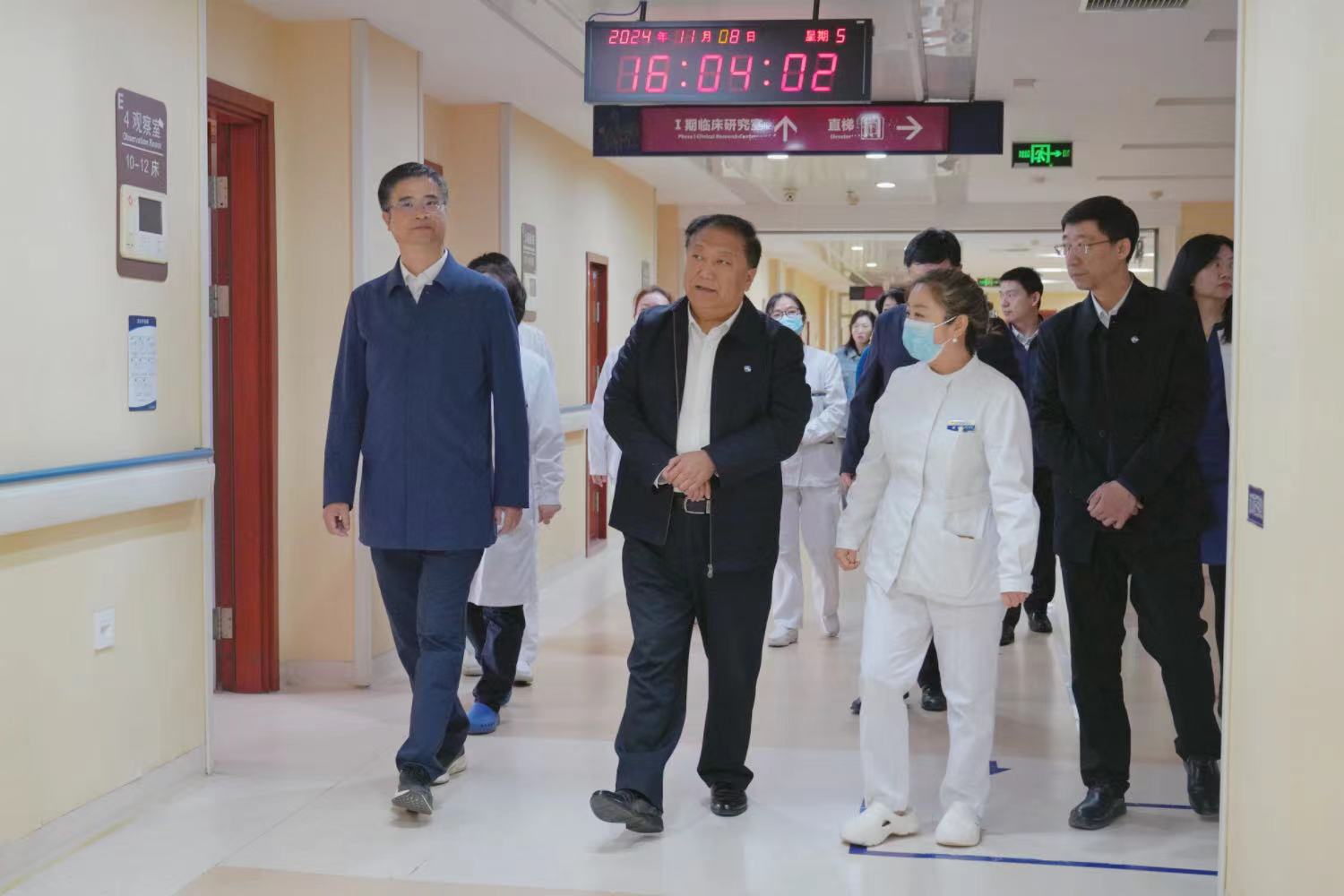 李亚东一行实地了解了医院门诊、急诊、AI智能阅片室、体检中心、外科病区、I期临床研究室等科室及医院所属部分基层医疗机构,与一线业务骨干亲切交谈,详细了解科室的运营管理、学科发展、人才队伍和党建工作情况,并重点围绕学科建设、基层医疗机构的转型发展等内容与医院领导班子成员开展座谈交流。